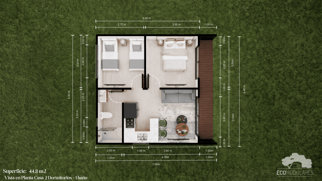 CASA DE 2 DORMITORIOS 1 BAÑO EN 44,8 m2
