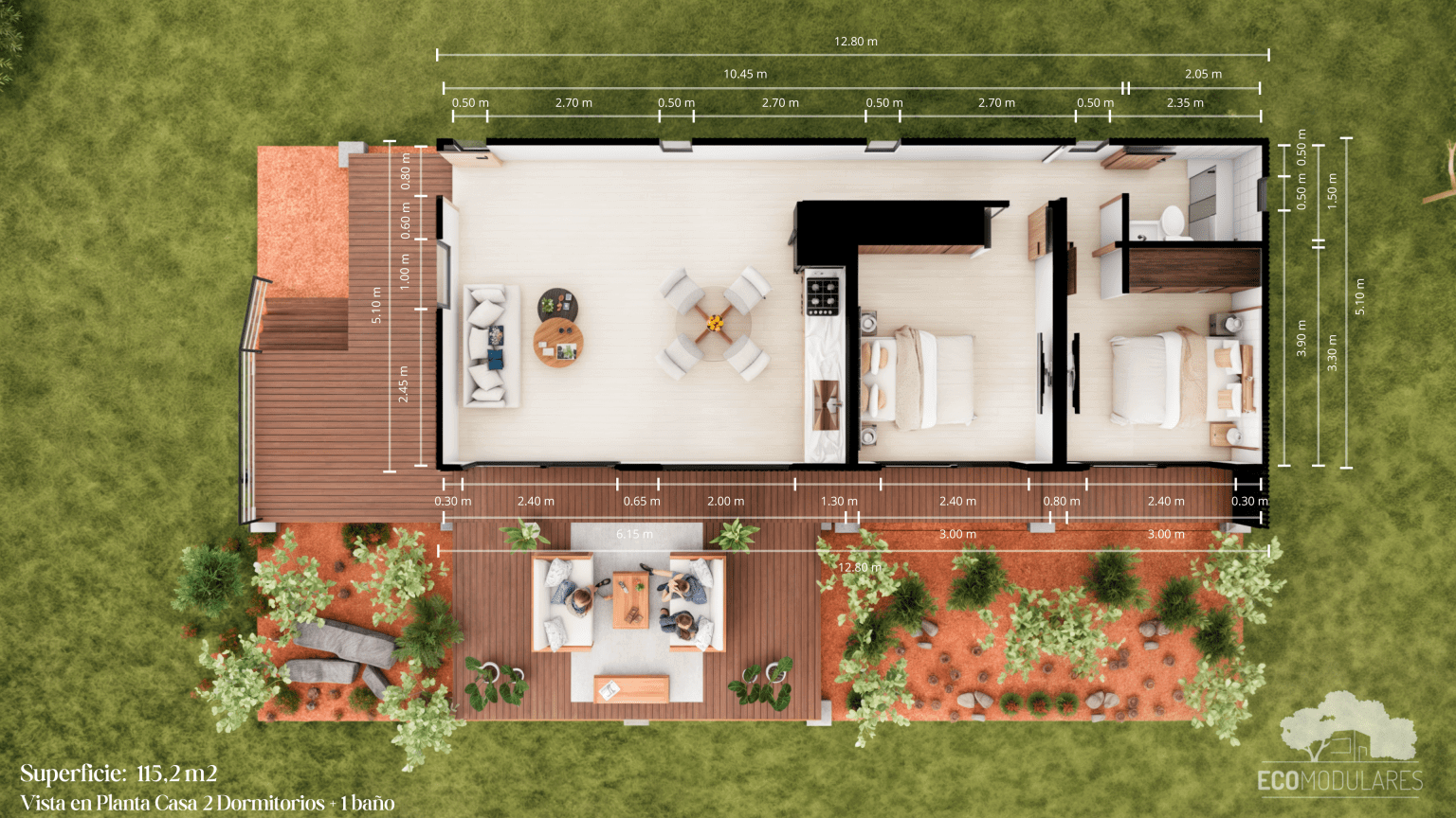 CASA DE 2 DORMITORIOS 1 BAÑO EN 115,2 m2 (incluye terrazas)