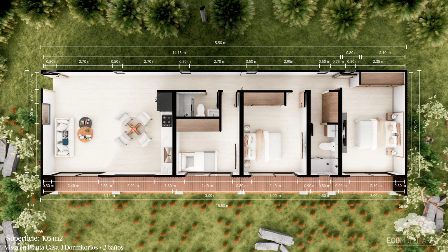 CASA DE 3 DORMITORIOS 2 BAÑOS EN 105 m2 (incluye terraza)