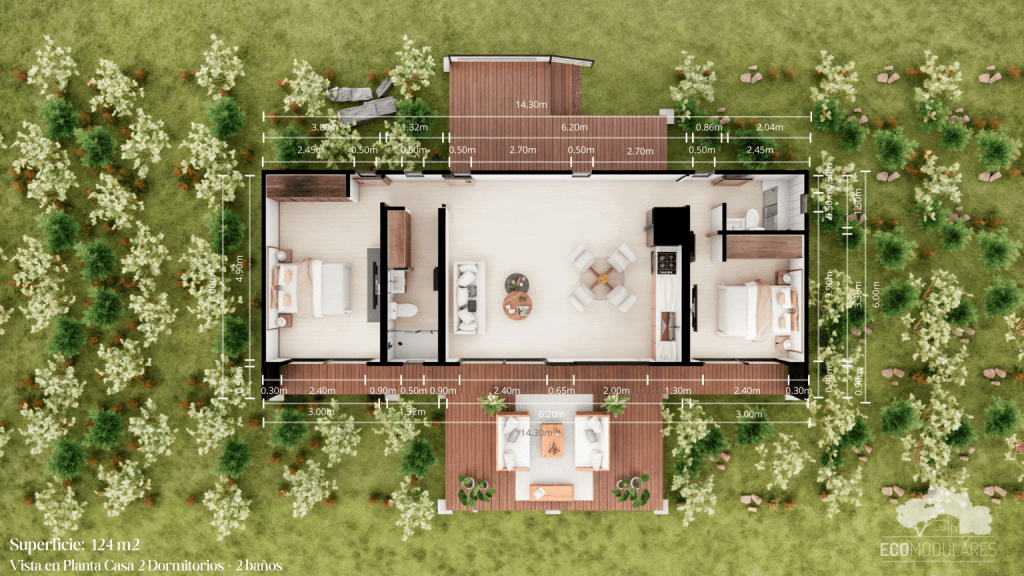 2 Dormitorios y 2 baños en 124,2 m2