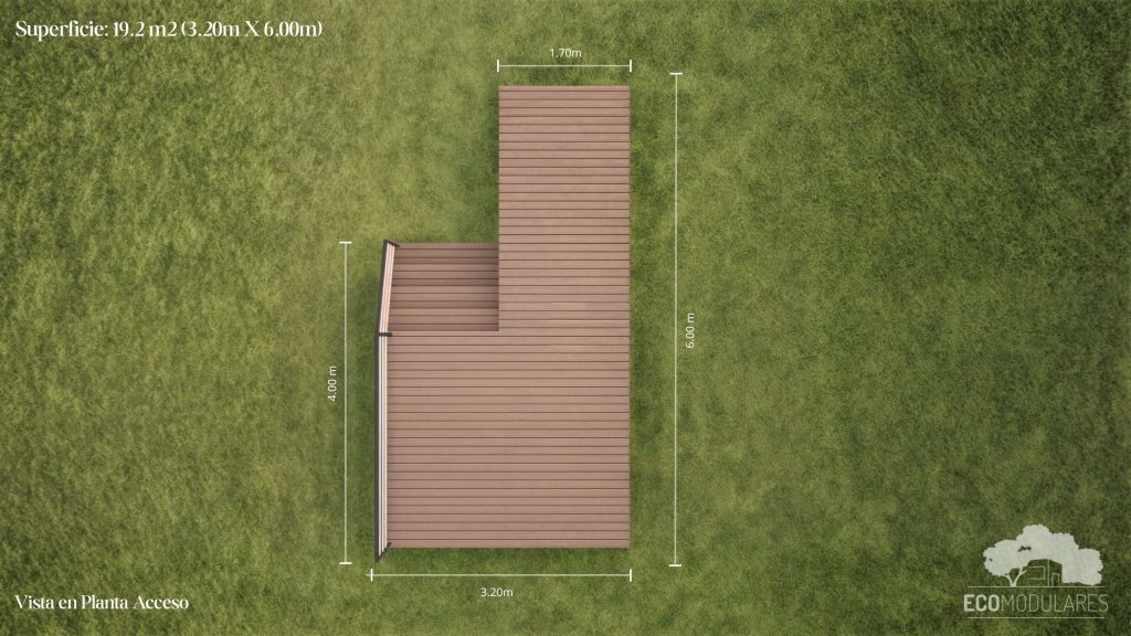 ACCESO VIVIENDA Son 19,2 m2, Largo 6 metros y ancho de 3,2 metros. Valor desde $2.090.000.- puesta en fábrica (Valores Netos). $2.090.000.- + IVA