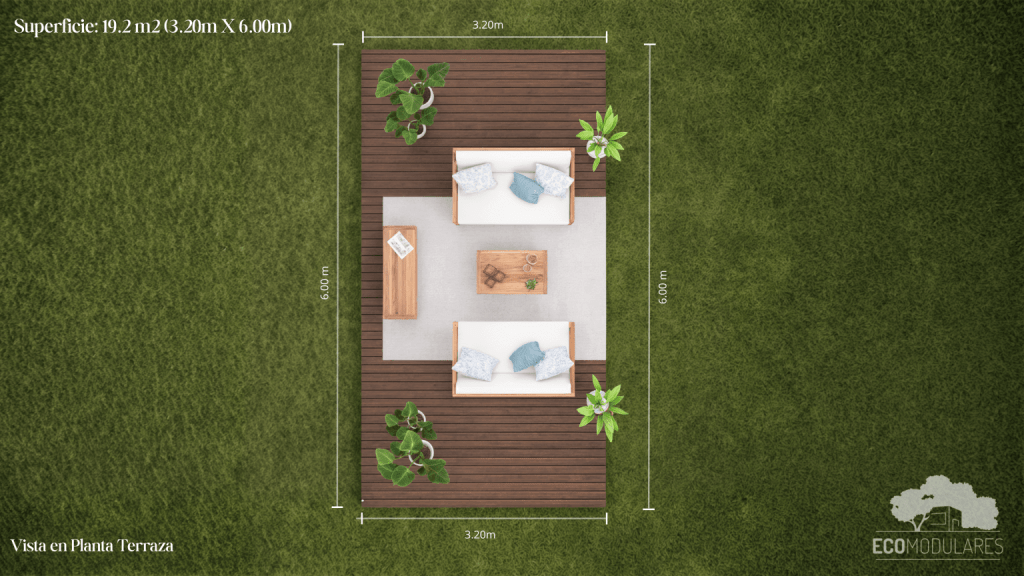 TERRAZA CUBIERTA Y DESCUBIERTA Son 19,2 m2, Largo 6 metros, ancho de 3,2 metros y 0,2 metros de altura. Valor de terraza descubierta $1.890.000.- puesta en fábrica (Valores Netos).Valor de terraza Cubierta $5.650.000.- puesta en fábrica (Valores Netos). $5.650.000 + IVA